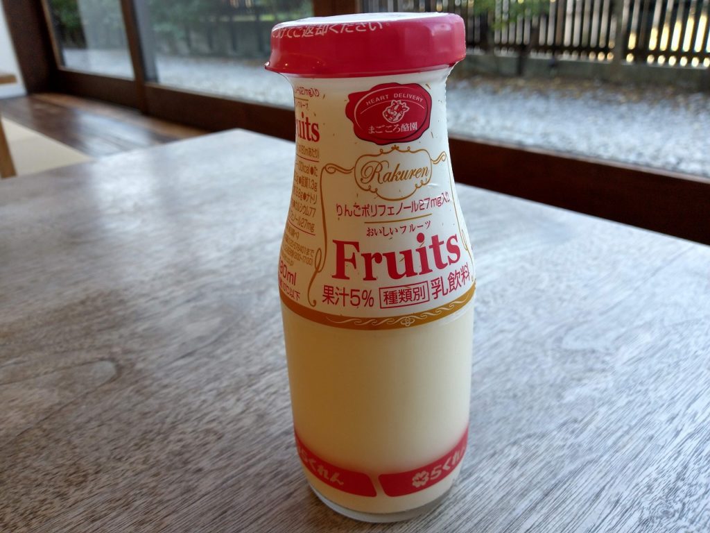 自販機でフルーツ牛乳を購入。休憩所もきれいで、下記写真エリアだけでなくフロアの方にも広めに設置されています。軽く休憩する程度なら十分な広さです。