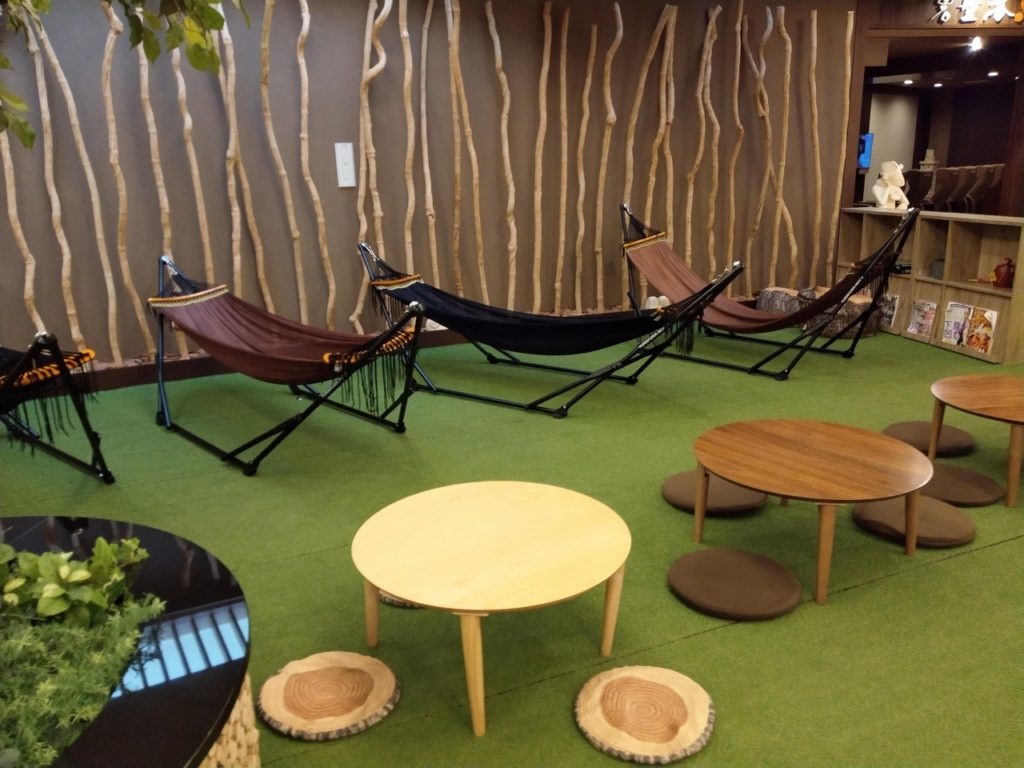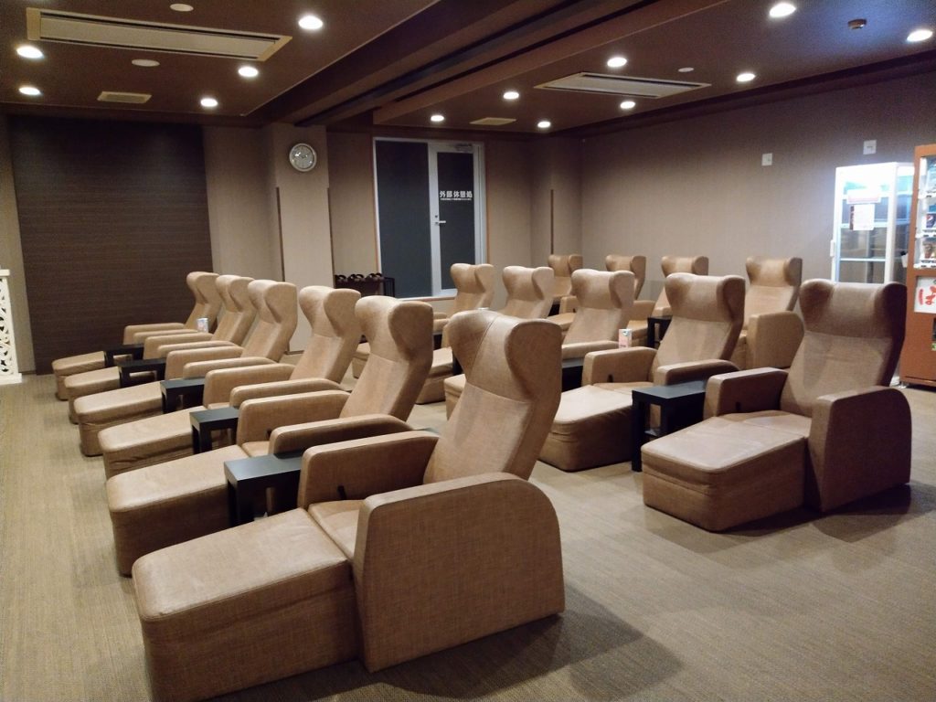 リクライニング・漫画コーナーも充実二階にはリクライニング施設も増強されており、約100近いリクライニング席がある。 漫画コーナーも充実しており5000冊程度の蔵書数はあると思われる。
