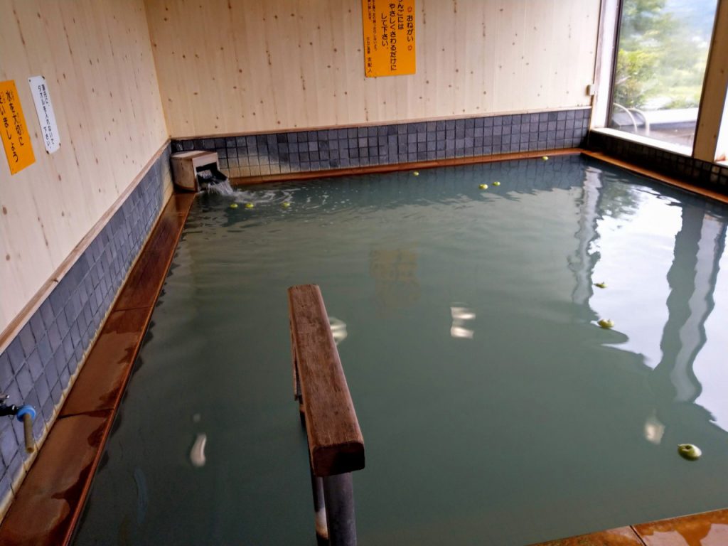 りんごが浮いている白濁硫黄臭の温泉・別棟の温泉は石油臭がし別系統の温泉が使用されている?? ナトリウムー塩化物強塩温泉 成分17.09gPH7.3温度71.1℃ 循環・加温・塩素消毒・加水表記のある温泉だが・・源泉100%掛け流しと言っても分からないぐらい個性が打ち消されていない素晴らしい温泉である。しっかりとした硫黄臭が浴室に充満しており、苦みを有し白く濁っている。 そんな大変個性的な湯が10人以上は入れそうなりんごの浮いた浴槽になみなみ注がれており、付近の掛け流し温泉であるテルメ柏陵と比べても全然遜色の無い温泉である。 更に上の別棟に露天風呂があるのだが色こそ似ているが、こちらは出汁の様な塩味を有し 石油の様な匂いがはっきりする温泉で内湯の温泉とはまた違うテイストである。同じ系統の源泉を使用していると思っていたのだが、違う源泉を使っている可能性もある。 全く消毒臭も感じず、循環もしていない様に見受けられるのだが・・あえて全てを表記することによって、温泉マニアを試したり外来の来客を調整しているのでは無いかと訝しんでしまうぐらいどちらも素晴らしい湯であった。 これは・・中々曲者の伏兵温泉である。 |