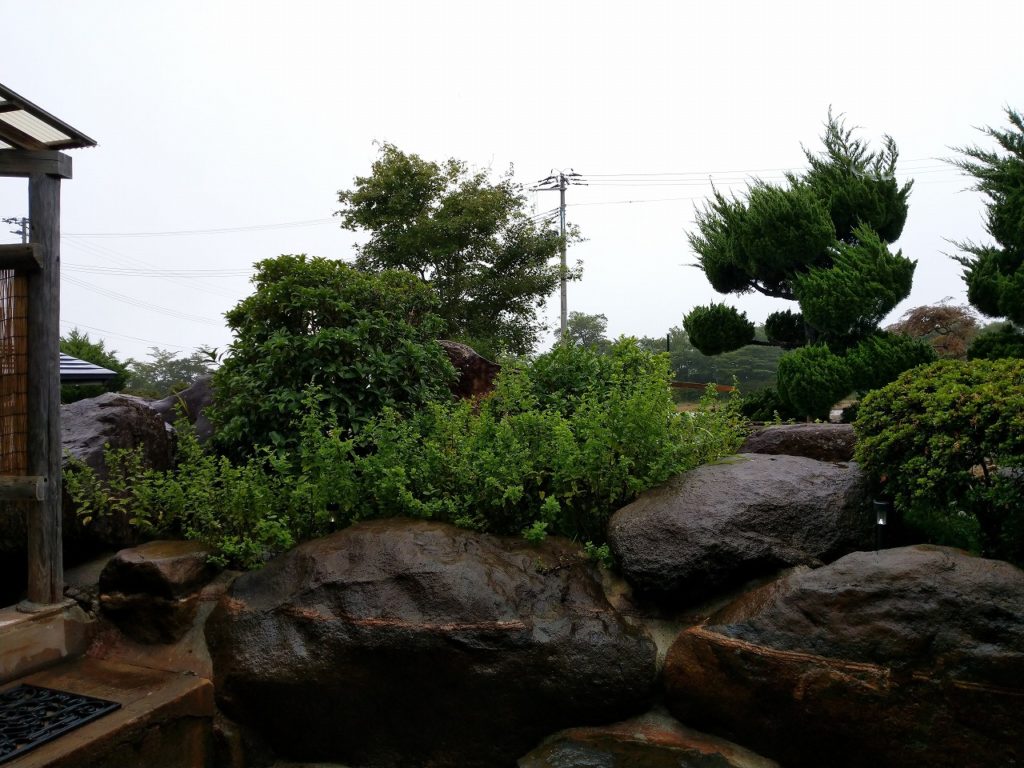 車を駐車場に停めてドアを開けて降りると、傘を持った女将さんが大変明るい感じの人で満面の笑顔で「ようこそいらっしゃませ」と車の前まで迎えてくださり逆に恐縮する。