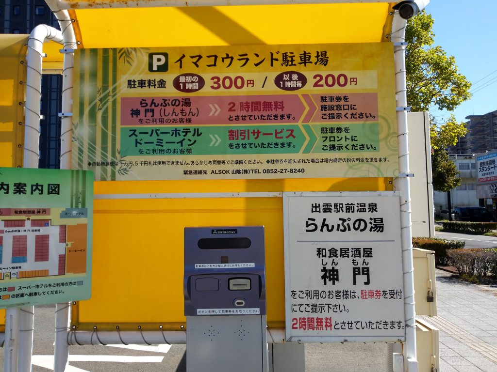 らんぷの湯を使用し、受付で駐車券を提示すれば二時間無料になる(2019/10現在)