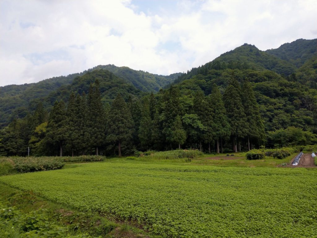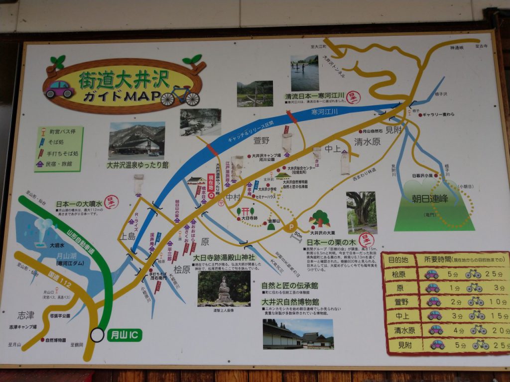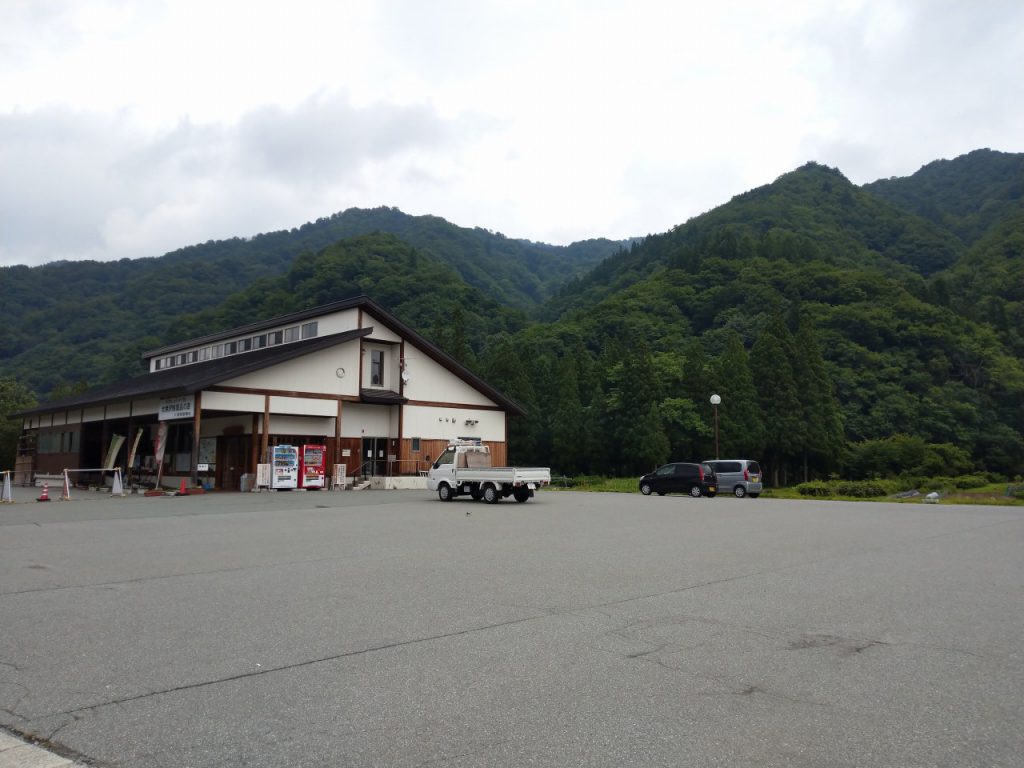 大井沢トンネルを越えるとかなり古い建物が点在した雰囲気となっており、山村の村といった印象。山肌が近く、寒河江川と畑が点在している場所に建っているログハウス風の建物が 大井沢温泉ゆったり館である。