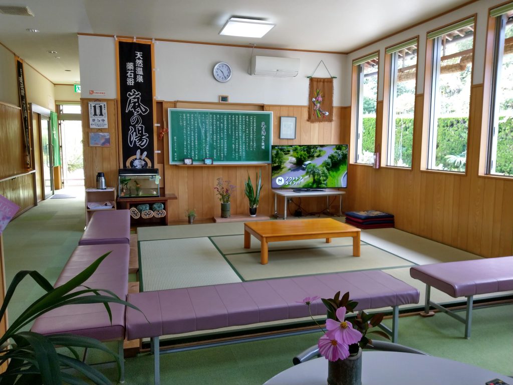 畳の休み処がある・露天で涼む事が出来る シンプルな地元の温泉銭湯といった感じで、内湯の浴槽一つと、別料金で温泉の熱気砂利風呂が設置されている。 畳も最近取り替えたのか新しい畳の匂いがし座布団が置かれているので人が少なければ少し一服程度は出来るかもしれないがあまり長居が出来る設備のある温泉では無いかなという印象である。 |