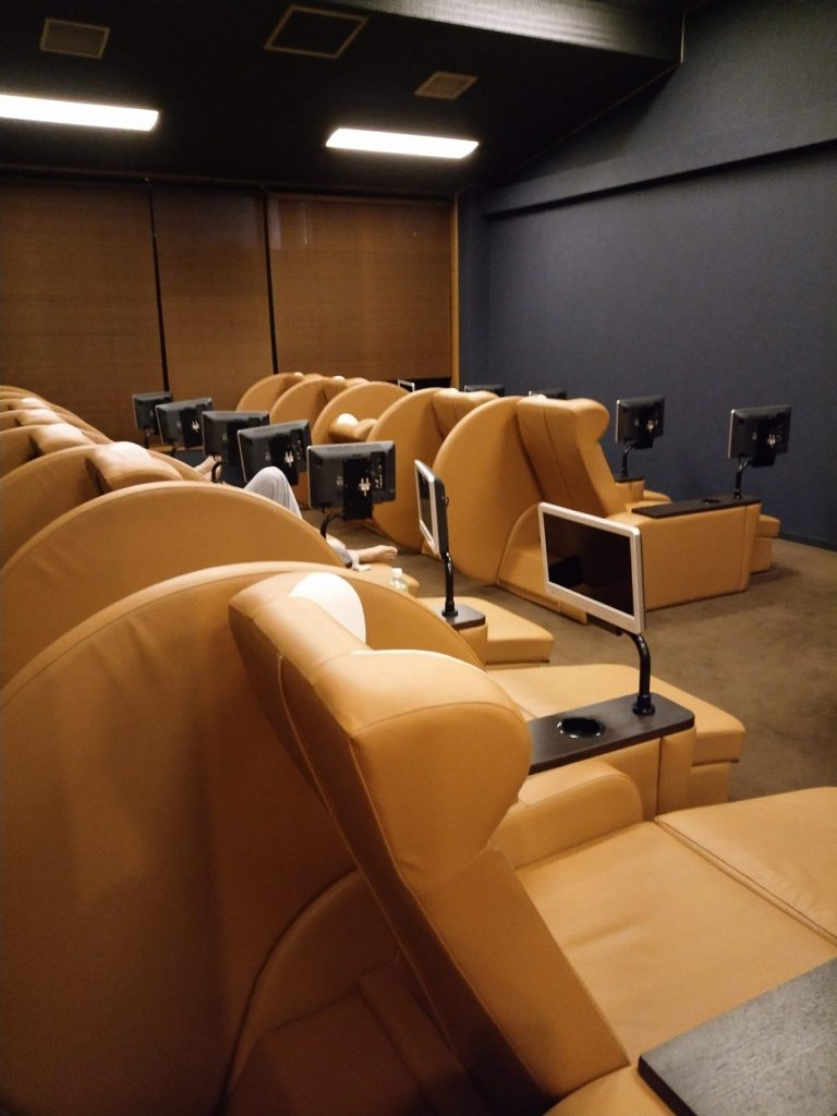 USBコードと電源タップも付属している 二階にはリクライングが30席設けられており、入浴後もゆっくり寛ぐことが可能である。 (昔はベッドかうたた寝処を置いていた記憶があるのだが・・リニューアルされた様である)