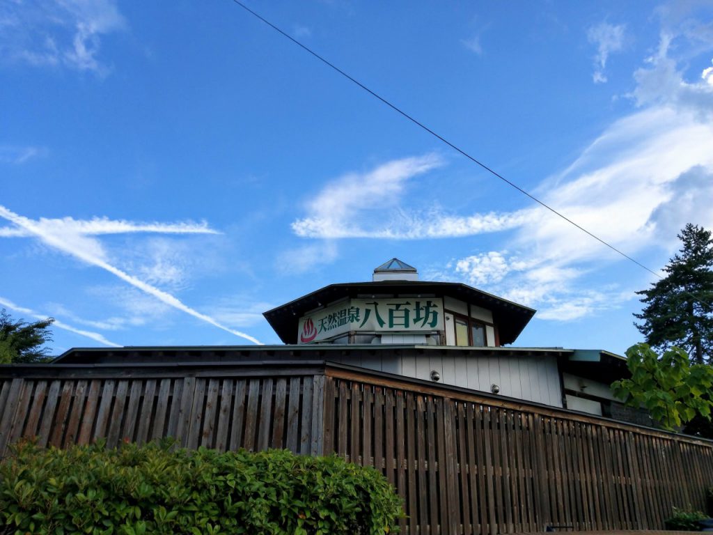 たまたま近くで立ち寄った、リサイクルショップなどをついでに回りつつ、次に訪れたのは国道13号線付近にある、天然温泉 八百坊という温泉施設である。