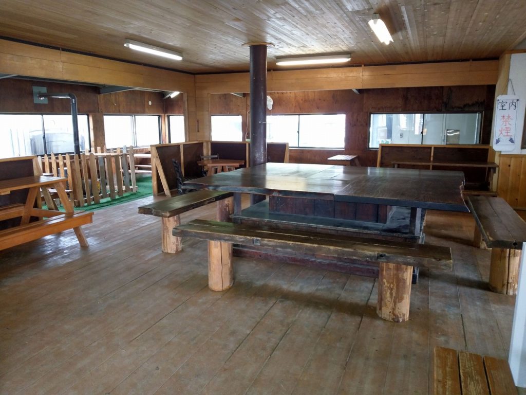 休憩室・売店・土産物屋などあり 内湯で10人程度・露天では70-80人ぐらいの収容が可能そうな広々とした浴槽で、人が混んでいてもそれなりに収容人数はある。しかしジャグジーなどのアトラクション風呂・サウナなどは一切無いことは留意されたい。 浴室内眺望だけでも充分満足出来るのだが、別のログハウスの建物では休憩所も用意されている。観光客向けの施設のお土産売店や食堂なども別建家で提供されている。