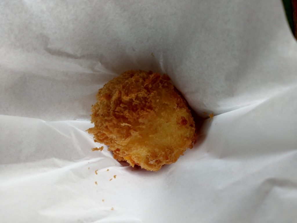 管理人がよく帰りに食べるのがこの「揚げ玉」である。外はカリッと中は温泉タマゴのようにトロッとした食感で150円で頂くことができる。安いし浴後のタンパク質摂取には最適だと思う。