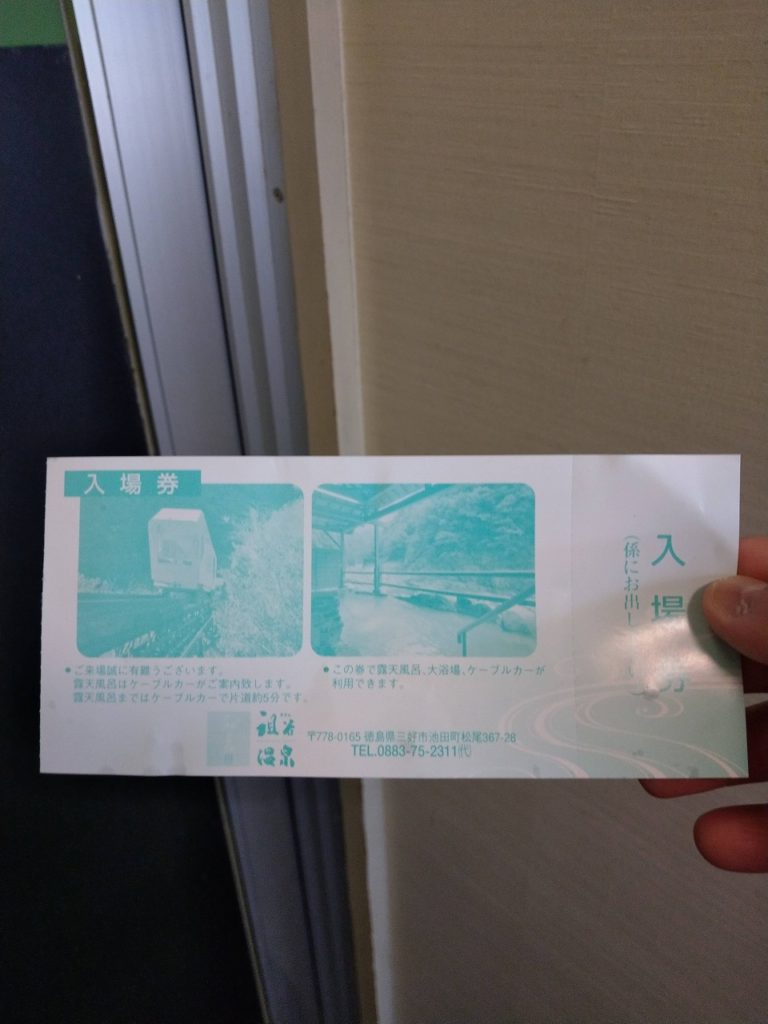 タマゴ臭のするトロトロのぬる湯・露天では100%源泉掛け流しを提供!! ケーブルカーを下り到着後、更に下二階相当分ぐらい階段を下っていくと10人程度が入れそうな長方形の湯船に源泉が豪快に注がれ掛け流されている。ややウグイス色がかった透明な温泉で泡付きも見られる。肌に纏わり付くようなトロリとした質感、掬って匂いを嗅がなくともハッキリとタマゴ臭がし、口に含むとイガイガ感のするまごう事なきアルカリ性・硫黄系の温泉である。 この温泉、使用掲示全て無しの純然たる掛け流しを提供しており、温泉マニア巡礼推奨レベル相当の温泉で有ることは間違いない。温度も不感温泉レベルのぬる湯で長い時間入っていられるのもポイント。後述するが景色も素晴らしく湯船から出たくねえ・・と思わせる希少な温泉である。 自分は7時半頃に訪れたが、丁度入浴していた宿泊客入れ違いになったようで湯船には宿泊客も誰もおらずロープウェーが次に降りてくる約10分ぐらいの間、貸し切り状態のまま湯浴みを楽しむ事が出来た。 もう一カ所館内に大浴場(内湯)が設置されているのだが、こちらは先ほどの温泉とは思えないぐらい個性が失われてしまっている。 こちらのみの入浴だと600円で入れるのだが・・これでは本末転倒。絶対に露天風呂に行ける1700円支払って日帰りプランで訪れる事を強くオススメする。 余談だがロープウェーを待っている間に屋内の待合所で日本経済新聞の切り抜きを拝見していたが、ぬるめの掛け流し全国一位として掲載されていた。まさに王者の貫禄・四国最強クラスの温泉と言えるだろう。