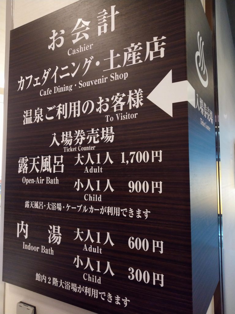 | 料金 | 大人1700円 大浴場のみは600円 |