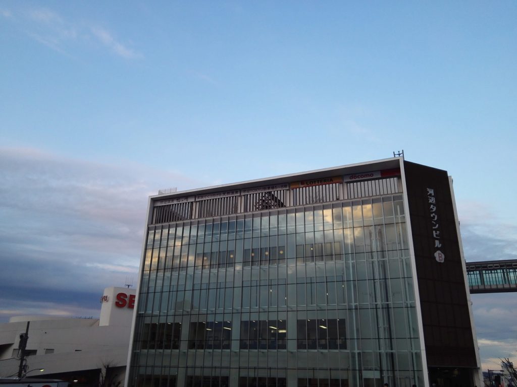 駅前はショッピングセンターが入ったビルと、図書館と温泉が入ったビルが並列して建っており全体的に平均的なニュータウンといった印象。付近には高いビルなどは少なく町並みの後方に山並みを望むことが出来る。中々良い雰囲気である。