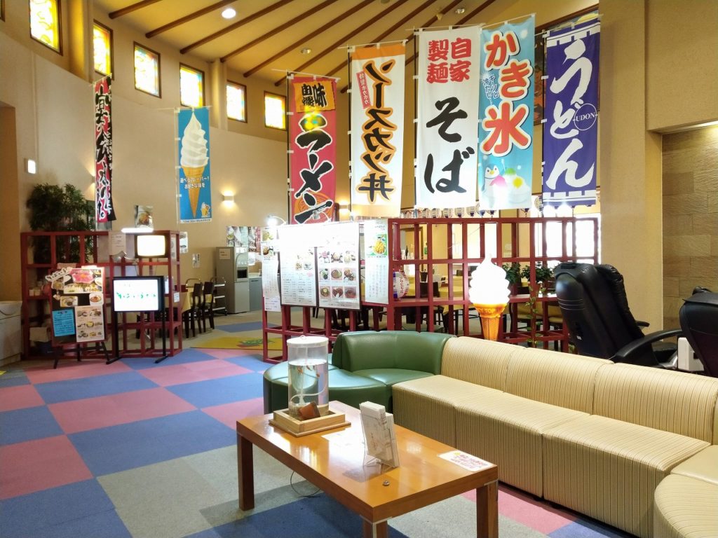 今回は利用しなかったが食堂も大きめで窓から渓流を眺めたりする事も可能である。休憩所で横になり、お昼になると休憩していた方々が皆食堂に向かわれていたのが印象に残る。 サイトを確認したが、無料の個室休憩所もあるとのこと(要予約)で田舎の温泉施設レベルを考えると休憩スポットとしては比較的良好な部類になると思う。あと牛乳が130円と安めに売られていた。