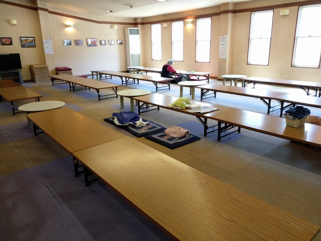 長机が16席ぐらい設置されており、広めの空間で座布団を枕に仮眠をとったりする事は可能。冊数は少ないが雑誌や新聞なども置かれている。水やお茶なども無料で飲むことが出来る。 休憩所でカタカタ温泉の感想をポメラを使って書いていたら、地元のおばあちゃんが「テレビつけても大丈夫ですか?昼ドラ見忘れちゃって」などと一声掛けられ恐縮してしまう。田舎の良き和やかな一コマである。