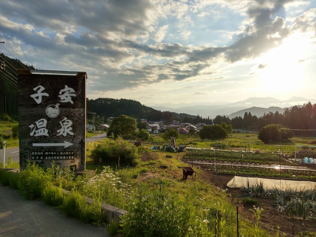今回訪れたのは長野県高山村にある『子安温泉』である。高山温泉郷の日帰り温泉の一つで付近は山の中腹にあり坂の傾斜が激しい。冬は豪雪地帯なのか除雪車が大量に停車されている。注意点としてはカーナビだと子安温泉の看板で到着した事になってしまう点だろうか。