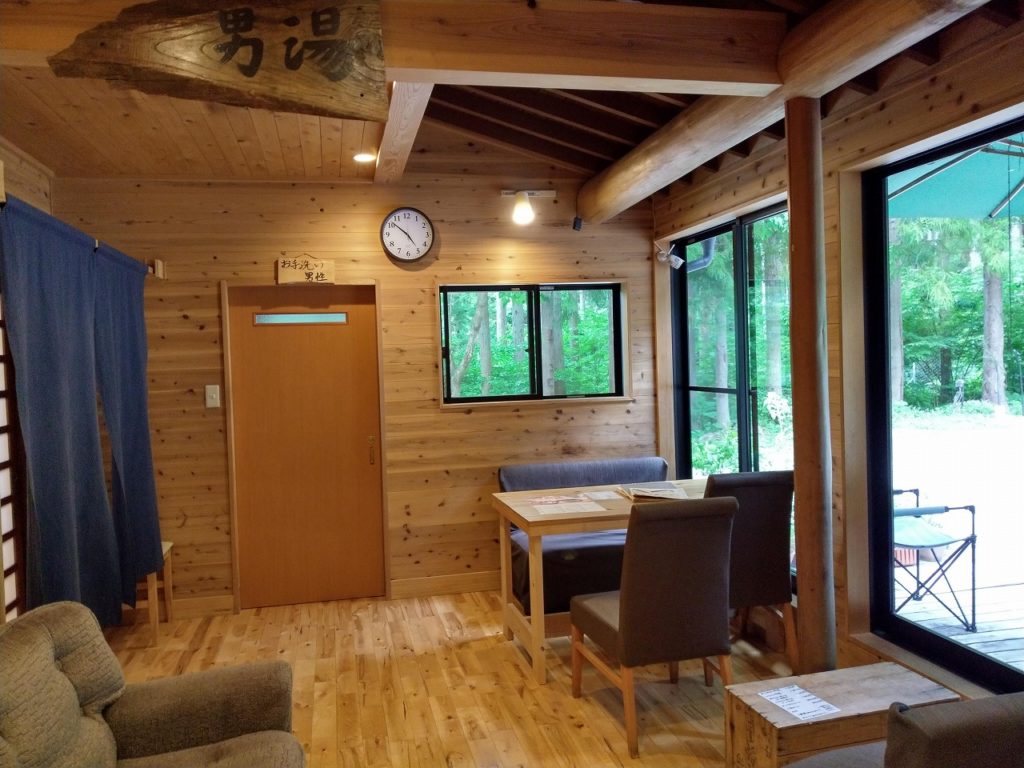 内装は新しめのログハウス小屋の様な温泉施設であり大変綺麗。売店や食堂なども何か手造りの雑貨屋さんみたいな良い感じの雰囲気であり田舎のお年寄りが営業している温泉と比べると若い人にも受けそうな感じの雰囲気・・秋田の銭川温泉を思い出した。 対照的に浴室内装はレトロ感を漂わせる雰囲気で、作られたものだとするならば割と凝った施設であると思う。間接照明もシンプルだが秘湯感を感じさせる浴槽、高い天井に剥き出しの梁や古さを演出させる壁や柱など・・ギャップが素晴らしい。静かに精神統一が出来そうである。 内湯のみの構成であるが、周りが森林なので自然感もしっかり感じられるのも良いところだと思う。