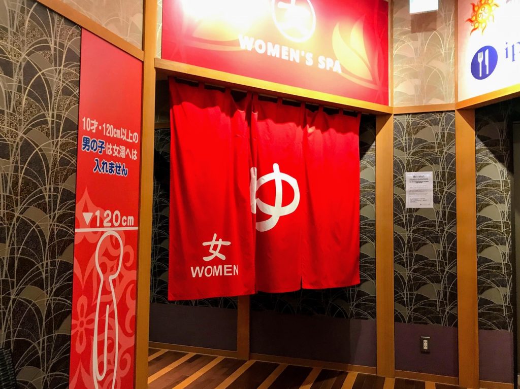 女湯の入り口には身長120センチ以上の男の子は入れません、と身長を測るサインボードがありました。同じように男湯の入り口には女の子の身長を測るサインボードがありました。様々なことへ配慮しているのは、さすがホテル内の温泉ですね。