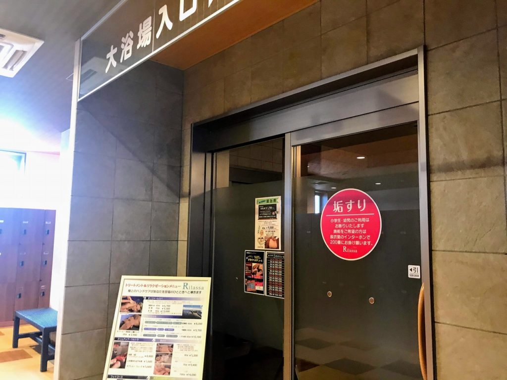 脱衣室から大浴場へ入る入り口の横には、垢すりコーナーの入り口もありました。別料金ですがリフレッシュを目的に、特に女性に人気のようです。