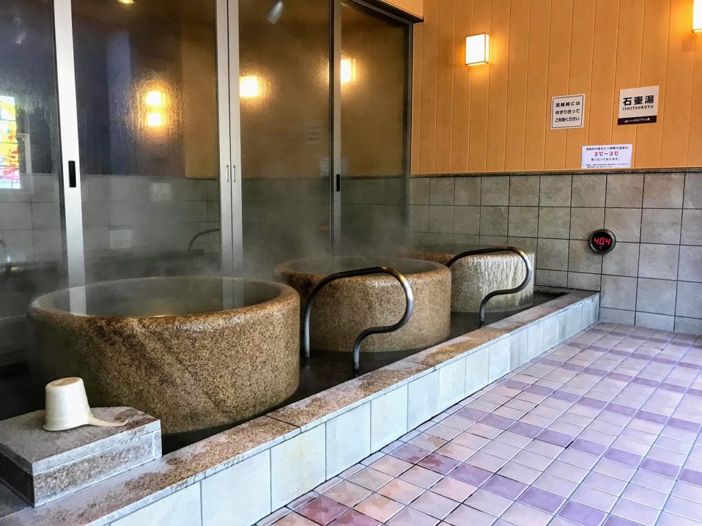 内湯はジェットバスとやせがまんのの湯(42度と高温)、炭酸泉があった。 炭酸泉は人口的なものではあるが体につく気泡が心地よく、温度もちょうどよく長く楽しむことができた。みなぴりかの湯では炭酸泉が一番人気のようで、多くの人が入っていた。