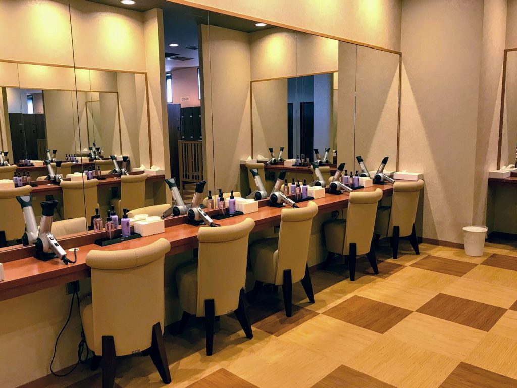メイクルームもかなり広く、清潔。頻繁に清掃の人が見回りをし、髪の毛もごみも一つも落ちていないのはさすがホテルだと感じた。 |