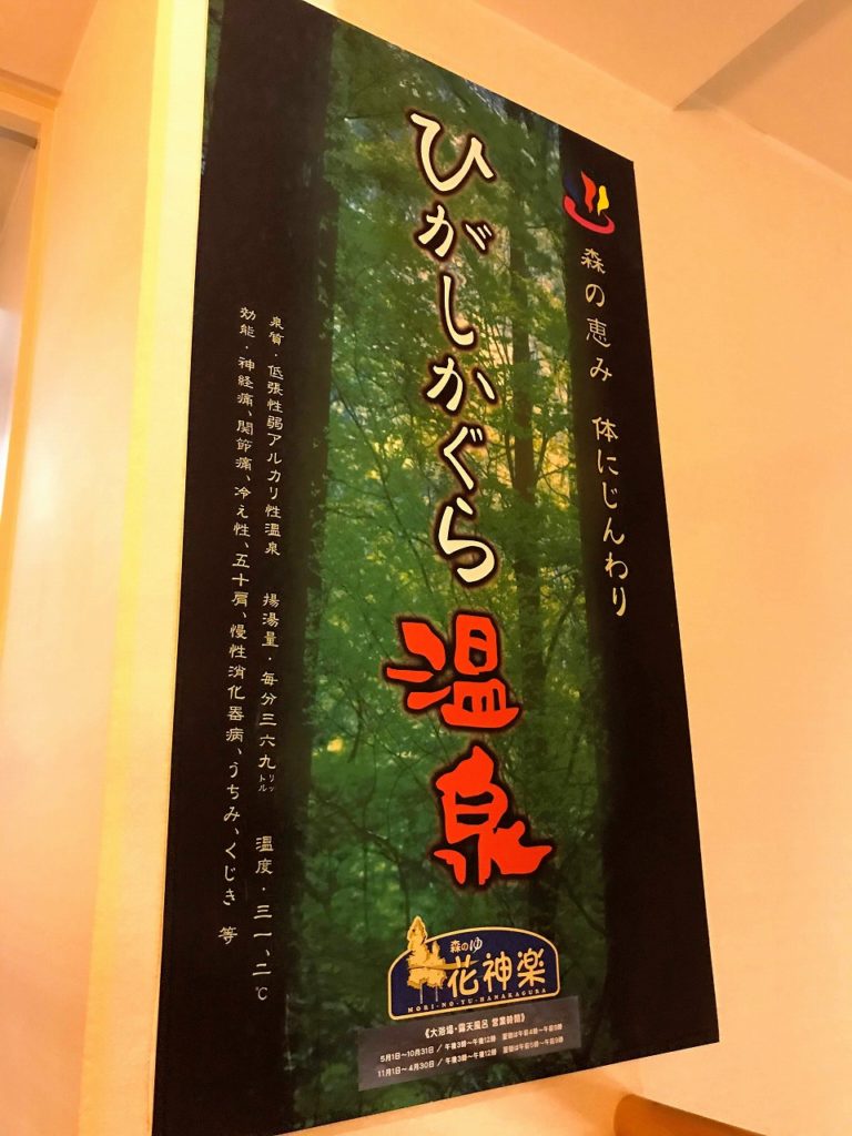 東神楽町の奥にある「東神楽森林公園」には、キャンプ場・パークゴルフ場・コテージ・サイクリングコースと佐々間なアクティビティがあります。その中に今回ご紹介する温泉、「森のゆ 花神楽」がありました。温泉リゾートホテルとして宿泊はもちろん、アクティビティ後の日帰り入浴温泉として人気の場所です。