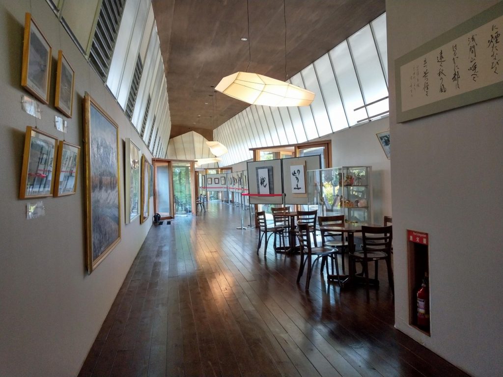地元のコミュニティ施設でもあるようで隣には食堂や地産の物産コーナーなども存在している。館内はオカリナの様な曲がトロトロと流れており大変静かな雰囲気となっている。