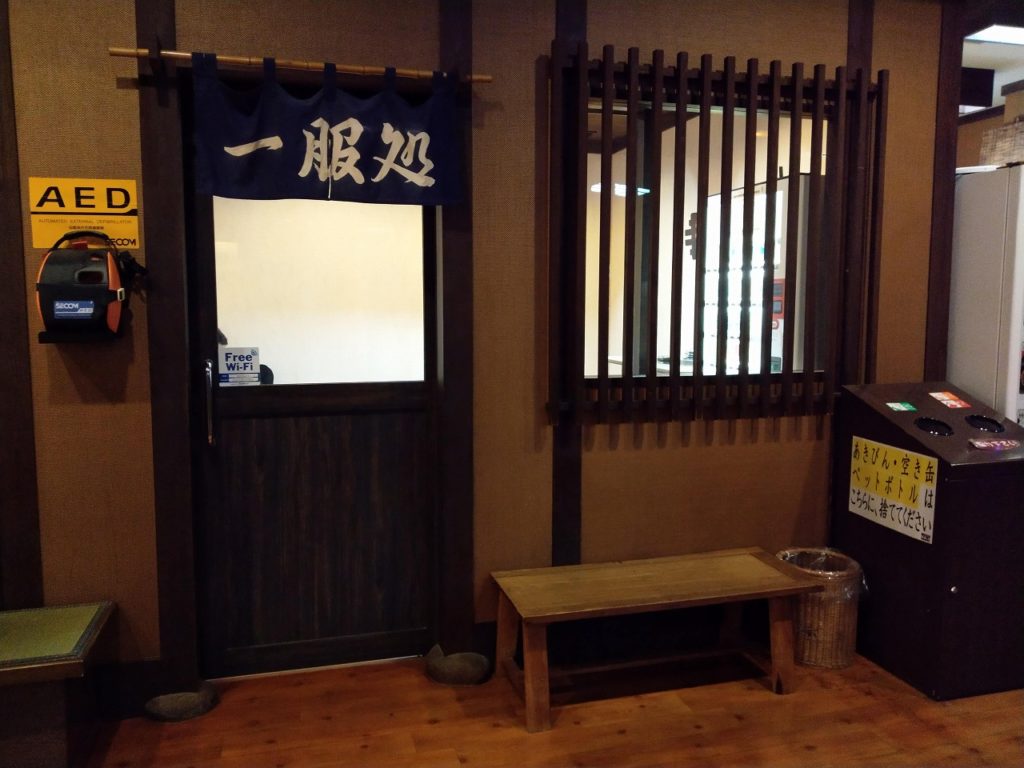 二階に上がり、下駄箱の鍵と更衣室の鍵は所持したまま券売機でチケットを購入し受付に渡す仕組みとなっている。平日の夜に訪れたが、混雑というレベルでは無いが人はそれなりにいる。なお土日祝に訪れると洗い場に行列が出来るぐらい非常に混み合っている印象のため個人的には平日訪問をおすすめしたい。