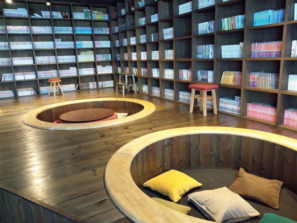 お洒落な和モダンお籠もり空間 おふろCafeの温泉だけあり、施設内は大変綺麗に清掃されている。 古民家調の和モダン・デザイナーズ的要素を含む空間で、他の施設では見られない円形の掘りごたつのようなコーナーやハンモック・長方形のお籠もりスペースなど、雰囲気目的で訪れても満足出来るような構成となっているのは流石だなと思う。