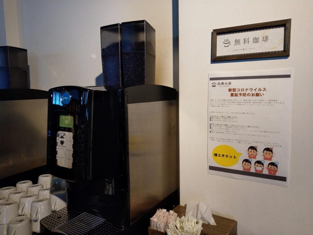 ■無料コーナーが充実している・ノマド的な活動も可能? この温泉の凄いところを更に補足すると「コンビニにあるような焙煎型のコーヒーサーバー」「マッサージ機」も7機も無料で提供されている点である。 他の施設だとマッサージ機を使用するのに100円程度の上納金が必要だが、マッサージ機無料な温泉施設ってかなり珍しいイメージがある。。その他MacPCの検索コーナー、Wifiスポット、胡座をかいて座れる場所や通常の机などもしっかり設置されており、ノマド的な活動も出来そうで嬉しい。