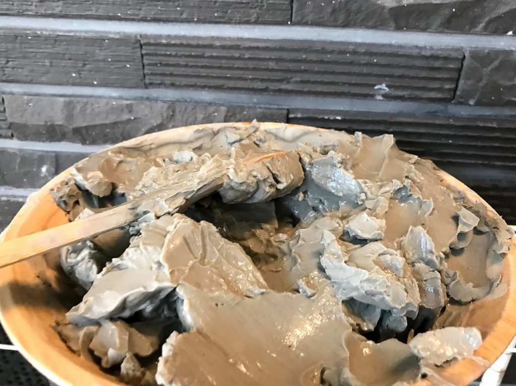 アメニティは化粧品メーカーのDHCのシャンプー・コンディショナー・ボディソープ、そしてクレンジングオイルと洗顔ソープが置かれていました。これは女性にはうれしいのではないでしょうか。使い心地が良くとてもリッチな気分になりました。 また、泥パック用の泥が山盛り置かれていました。顔につけて入浴しても良いようです。こちらの泥は、山形県西村郡月布で採掘された「モンモリロナイト」というものでとても美容に良きもののようでした。