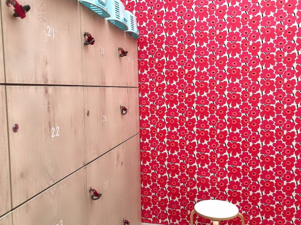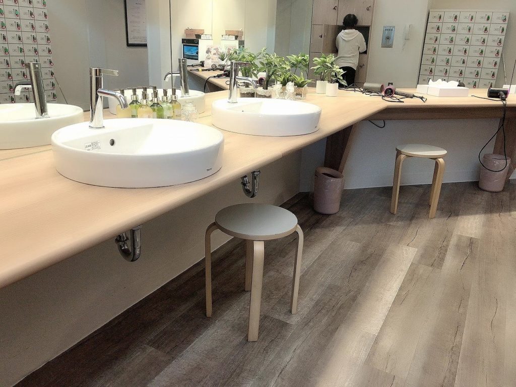 脱衣室も木製素材をふんだんに使ったナチュラルで北欧調の雰囲気。アメニティはこちらもすべてDHC、ドライヤーや綿棒、コットン、ティッシュが置かれていました。 |