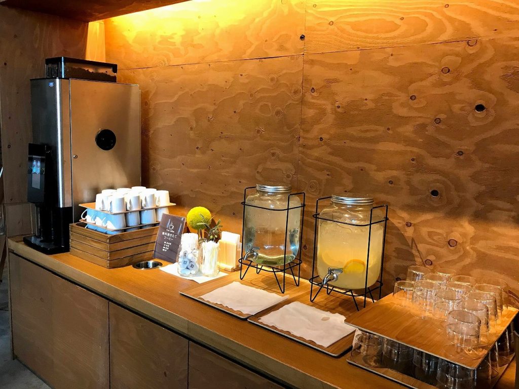 脱衣室には冷水器がありましたが、休憩する場所にはフルーツウォーターやコーヒー、カフェオレなどが無料提供されていました。コップもガラスや陶器で、何となく大切におもてなしをされているのが伝わってきます。 また、奥には「キッズパーク アソビバ」スペースで、子どもが伸び伸びと遊べるボールプールやトランポリンなどがありました。 |