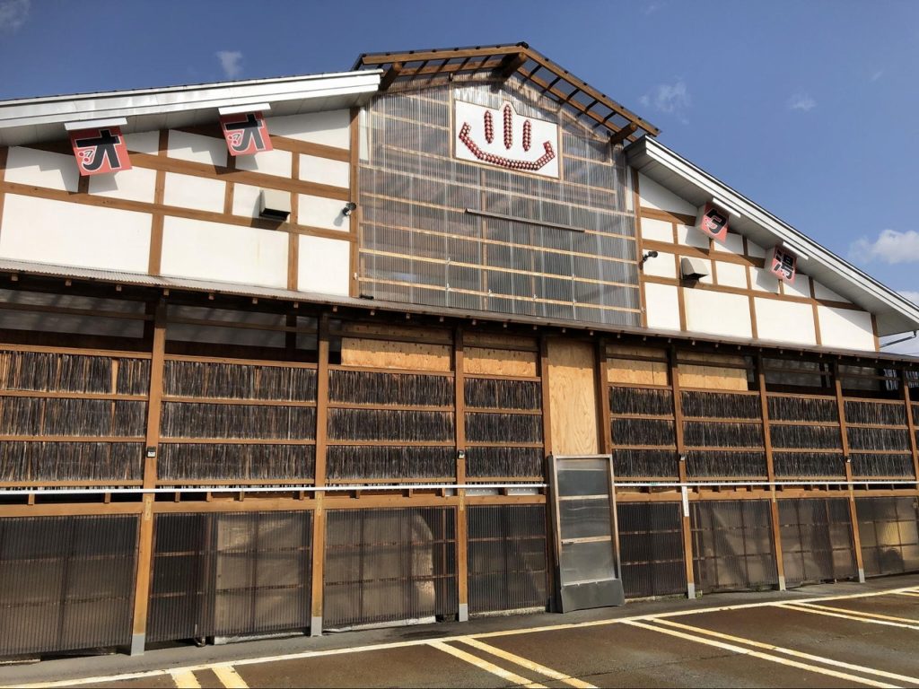 さくらんぼ東根温泉街に入る手前にあり、道路沿いにはややインパクトのあるレトロな看板が目立っています。