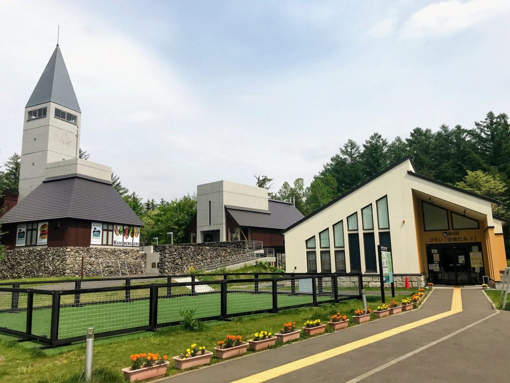 旭川市内から十勝岳温泉へ向かう途中にある町は「美瑛町」。青い池や白ひげの滝で有名な白金温泉街を通ります。白樺並木の森の中を行くような道を進めば、左手には「道の駅 白金ビルケ」が。ハンバーガーショップやアウトドアアイテムショップのノースフェイス、観光案内所やお土産ショップ、ソフトクリームショップがあります。