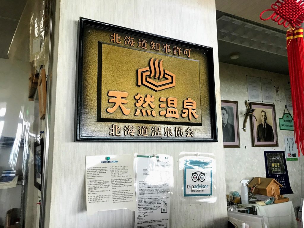 入ってすぐの受付の横には食堂がありました。富良野のご当地メニュー、富良野カレーがイチオシのようです。この日は到着したのが15時ごろだったので、入り口はしまっていました。ランチタイムと夕食時間だけのオープンのようです。