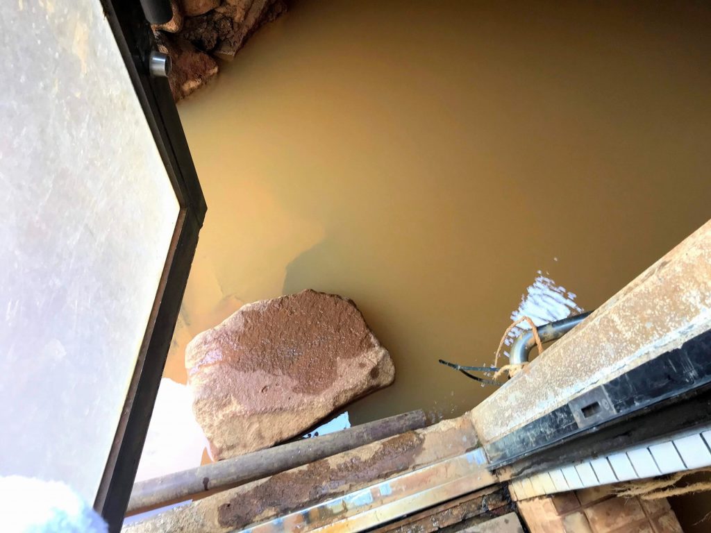 露天風呂へ出るには、内湯のお湯の中を歩いていきます。ドアを開けると、踏み石が一つあって、もうすでに湯舟!これは衝撃的です!!初めての体験でした。