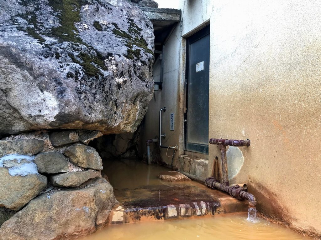 源泉が違うという温泉の入り口。翌朝は男女が入れ替わるので、両方の源泉を楽しむことができました。