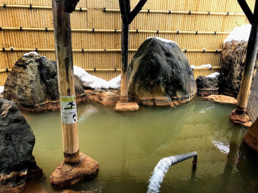 人気スポットの白ひげの滝がすぐ目の前。滝の音もよく聞こえ、風情たっぷりです。美しい眺めを見ながら入る露天風呂は最高! お湯は熱めですが、露天風呂だと寒いのでちょうどよく感じました。女性用の露天風呂は浴槽につかってしまえば、立ち上がって滝の方を見ても、向こうからは見えないような造りですが、男湯の露天風呂は双方で見晴らしが良いようですので、見られたくない方は気を付けましょう。 ちなみに露天風呂の浴槽の入り口には、足裏を刺激する小石は埋め込まれていませんでした。 |