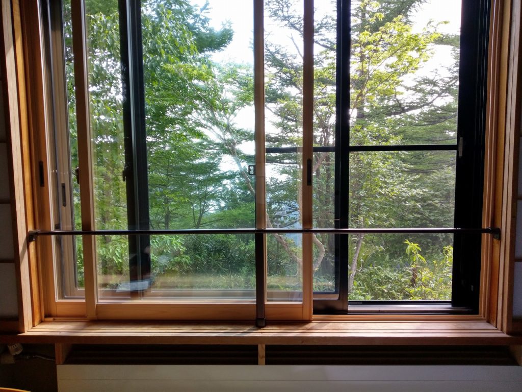 窓からは木々を面前に眺められ窓を開けると野鳥のさえずりが聞こえてくる。更に嗅覚でもマイナスイオンや木々の香りが漂い、気持ちを落ち着かせてくれる。