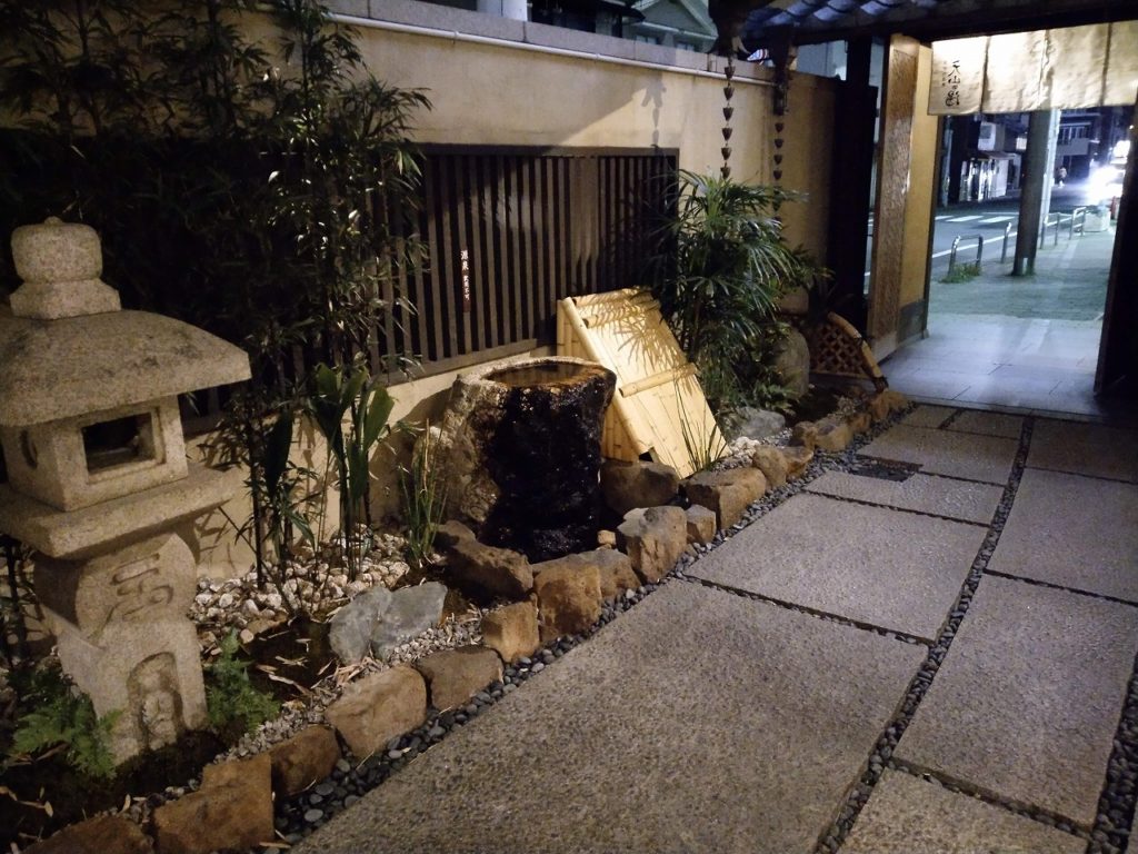 しかし浴室は高級感も感じられる石床基調の造りで石垣の壁・歴史のある蔵から移築し飾られている京瓦、青いライトでライトアップされた水風呂・しめ縄で区切られて奥から給湯され豪快に掛け流される温泉・畳と番傘で彩られた休み処など・・凝った上質な造りとなっている。観光として訪れても良い思い出になりそうな空間である。