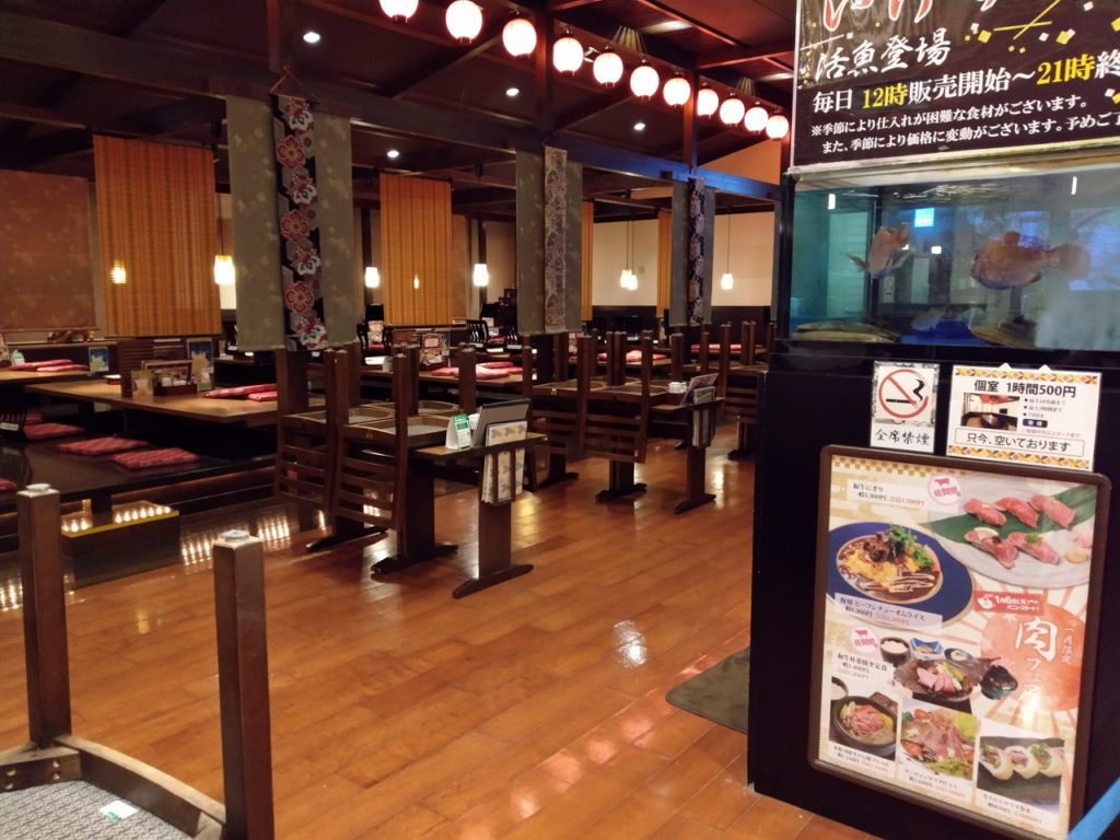 今回食堂は利用しなかったが食堂内に生け簀が設けられており、ここで刺身料理もいただける模様。