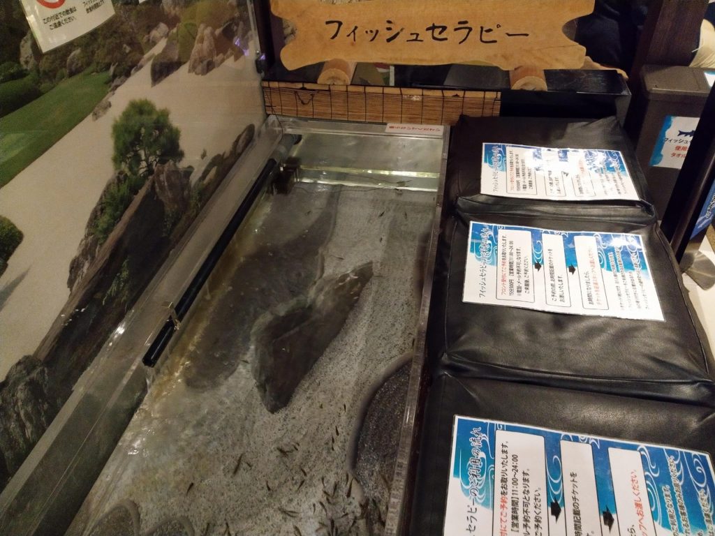 なお館内の浴室前に足湯コーナーが設けられており、家族や連れの待ち時間に足湯に浸かる事も可能。 その他常設のサービスなのか不明だがドクターフィッシュが設置されており300円で利用できる。他の施設だと1000円近くする事も多いのでこれならやってみようかなと思える価格帯である。