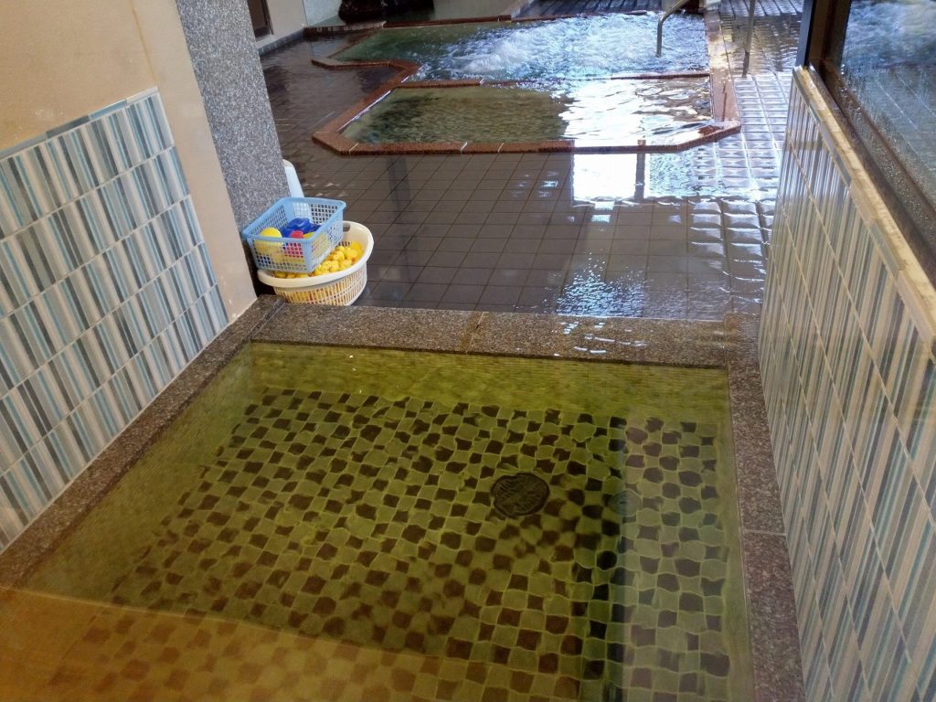 立ち寄り湯温泉銭湯・足湯とコインランドリー有 [浴室設備]上述の通り銭湯としては浴槽は多いが、湯の温度が違う・気泡風呂があるか無いかぐらいの違いしか無く、スーパー銭湯に行くような感覚で訪れる感じでは無いことも留意されたい。しかし洗い場は多く人の多い時間帯に訪れても余裕がありそうに感じられる。 [付帯設備]付帯設備もフロアの自販機や待合の椅子とテレビの構成となっているが、キッズコーナーが小さく設けられている。これだけ書くとシンプルな温泉なんだろうなと思われそうだが駐車場付近に足湯が設けられていたりコインランドリーなども設けられていたりするなど旅している人にも好評を博しそうな設備はある。なお温泉銭湯だがしっかりアメニティも準備されている。 ちなみに売店や浴槽にアヒルさんの風呂遊具が用意してある。