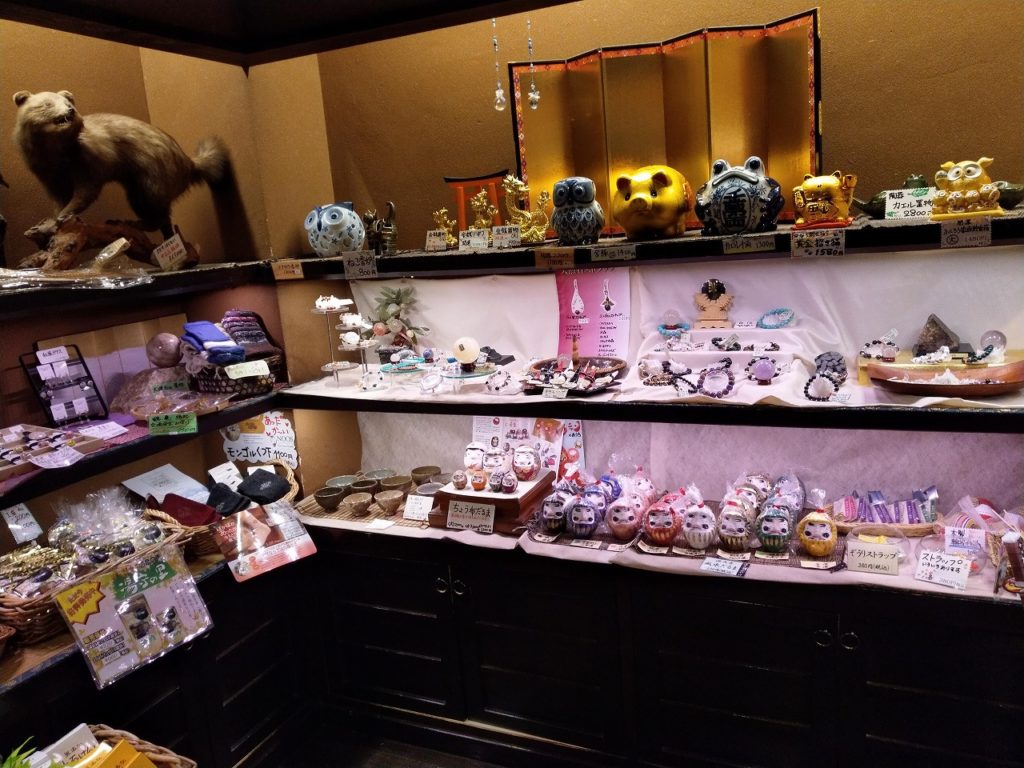 売店コーナーの販売物も個性的で、入口には鎧や鳥の剥製なども飾ってある。